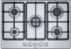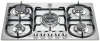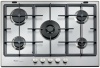 Piano cottura a gas - larg. 74 cm. - 5 fuochi - accensione elettrica fuochi - piano acciaio inox - griglie in ghisa - comandi frontali - colore acciaio inox