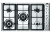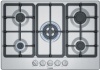 Piano cottura a gas - larg. 75 cm. - 4 fuochi - accensione elettrica fuochi - piano acciaio spazzolato - griglie in ghisa - comandi frontali - colore acciaio inox
