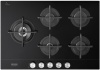 Piano cottura a gas - larg. 86 cm. - 5 fuochi - accensione elettrica fuochi - piano acciaio inox - griglie in ghisa - comandi laterali - colore acciaio inox-nero