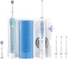Dental center rete - pulizia getto d'acqua + pulsante-rotatorio oscillante - 1 velocità - 20000 pulsazioni/minuto - azione 3D - 4 beccucci 2 testine - pulizia 90 secondi - colore bianco-blu